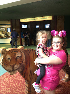 | Day 2 of Disney we went to Animal Kingdom, this park was really fun and much less crowed. Juliet's favorite ride of the day was the animal safari where she saw giraffes, elephants, tigers, and more! |